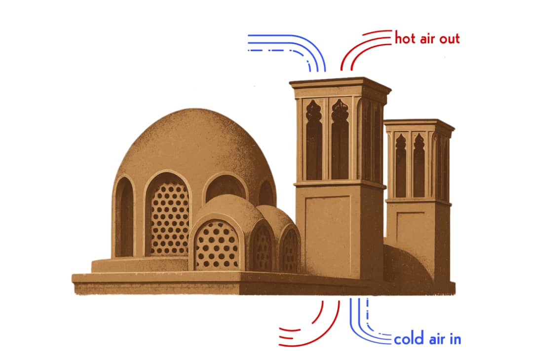 در ایران باستان، بادگیرها بهعنوان نخستین سازههای هوشمند تهویه، با هدایت جریان هوا، شرایطی مطلوب و آرامشبخش را در فضاهای زندگی فراهم میکردند. این نوآوری تاریخی، پایهای ارزشمند برای اندیشههای امروزی در صنعت تهویه مطبوع به شمار میرود.